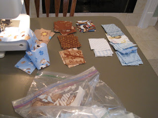 Sandy's stacks of pieces for making her puppy dog baby quilt.